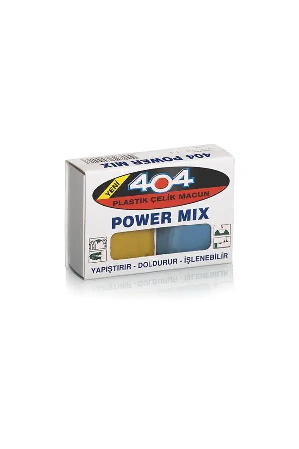 404 Power Mix, 80 gramlık ambalajında sunulan, çift bileşenli bir plastik çelik macundur. Bu ürün, metal yüzeylerdeki çatlak ve deliklerin onarımında etkili olup, sertleştikten sonra boyanabilir ve matkapla delinebilir özelliklere sahiptir.