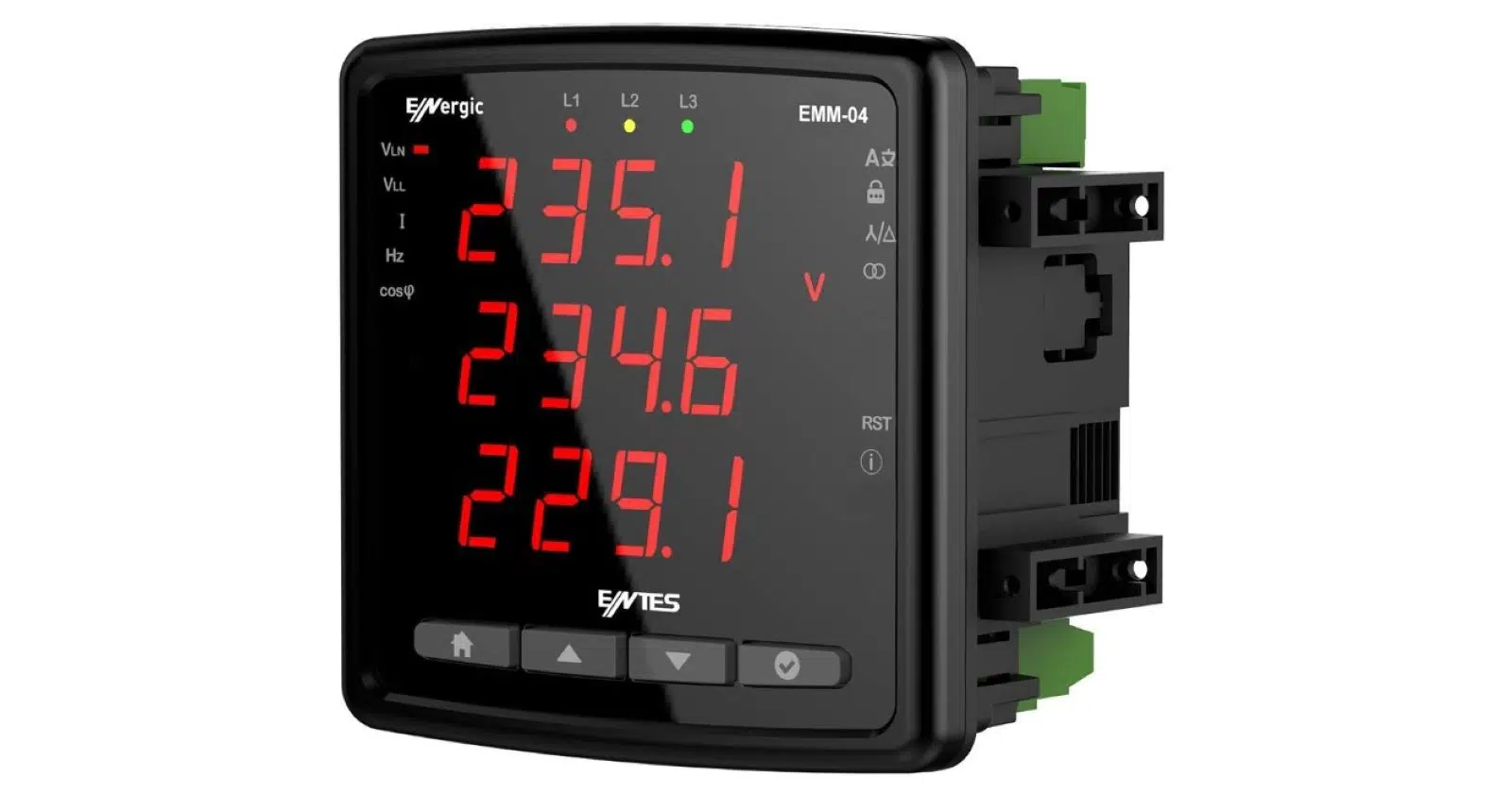 Entes EMM-04, üç fazlı elektrik sistemlerinde birden fazla elektriksel parametrenin ölçümünü ve takibini yapan dijital panel multimetredir. Endüstriyel ve ticari panolarda ölçüm, izleme ve enerji kontrolü için uygundur.