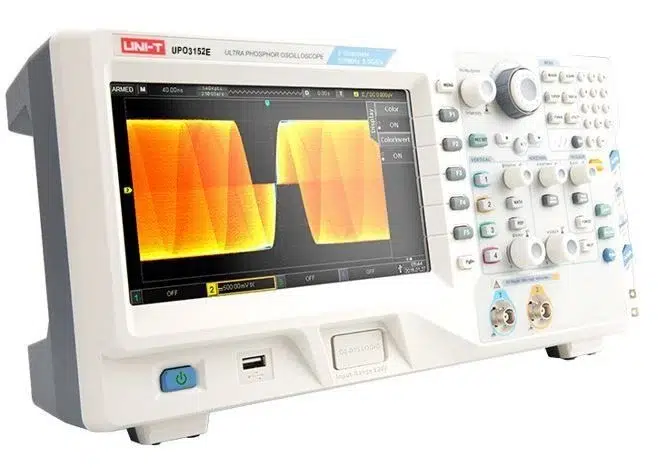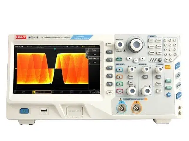 UNI-T UPO3152E Ultra Fosforlu Dijital Osiloskop, elektronik mühendisliği, eğitim ve endüstriyel uygulamalar için geliştirilmiş, 150 MHz bant genişliği ve 2,5 GS/s gerçek zamanlı örnekleme hızına sahip çok fonksiyonlu bir test cihazıdır.