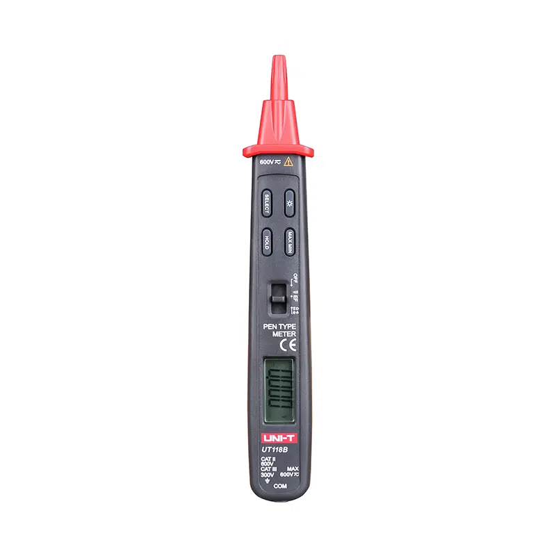 UT118B Kalem Tipi Dijital Multimetre, UNI-T markasına ait, kompakt ve taşınabilir bir dijital multimetredir. Özellikle hızlı ölçüm yapmak isteyen teknisyenler ve hobi elektronikçileri için oldukça pratik bir üründür. Kalem tipi tasarımı sayesinde tek elle rahatça kullanılabilir ve yer tasarrufu sağlar.