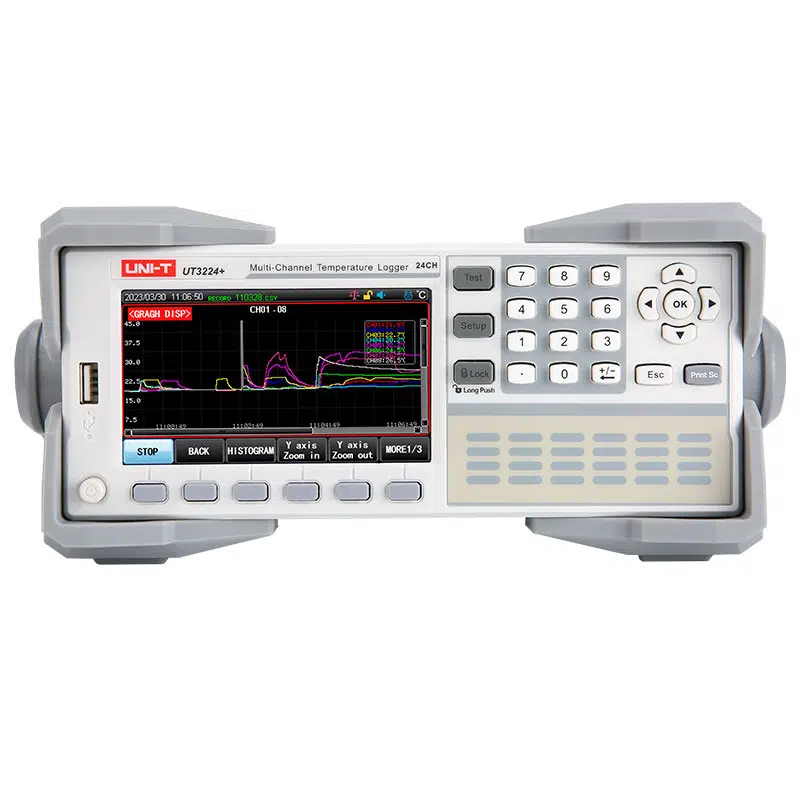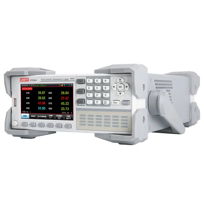 Unit UT3208+ Çok Kanallı Sıcaklık Test Cihazı, 8 kanallı sıcaklık ölçümü ve veri kaydı yapabilen, endüstriyel ve laboratuvar uygulamaları için tasarlanmış çok kanallı bir sıcaklık test cihazıdır. Bu cihaz, farklı termokupl tipleriyle geniş bir sıcaklık aralığında hassas ölçümler yapabilme yeteneğine sahiptir.