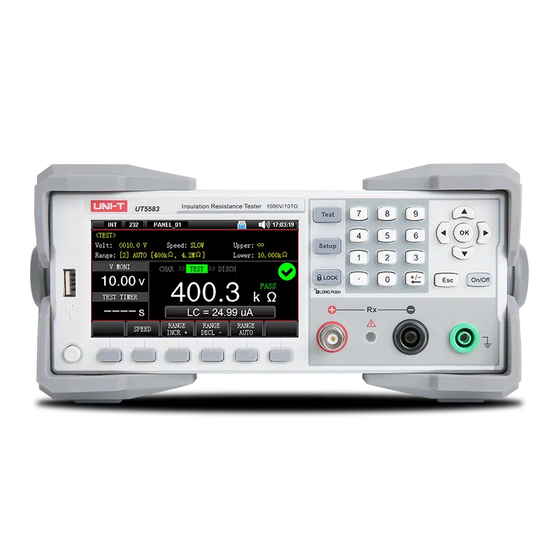 Uni-T UT5583 İzolasyon Direnci Test Cihazı, yüksek hassasiyetli ölçümler ve gelişmiş özellikler sunan profesyonel bir masaüstü yalıtım test cihazıdır. Elektriksel bileşenlerin, dielektrik malzemelerin, kabloların ve ekipmanların yalıtım direnci ve kaçak akım ölçümlerinde kullanılır.
