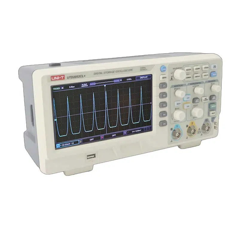 UNI-T UTD2152CL Dijital Hafızalı Osiloskop, elektronik ölçüm ve analiz ihtiyaçlarını karşılamak üzere tasarlanmış, 150 MHz bant genişliği ve 500 MS/s gerçek zamanlı örnekleme hızıyla donatılmış bir cihazdır. Eğitim kurumları, Ar-Ge laboratuvarları ve endüstriyel uygulamalar için uygun fiyatlı ve yüksek performanslı bir çözümdür.